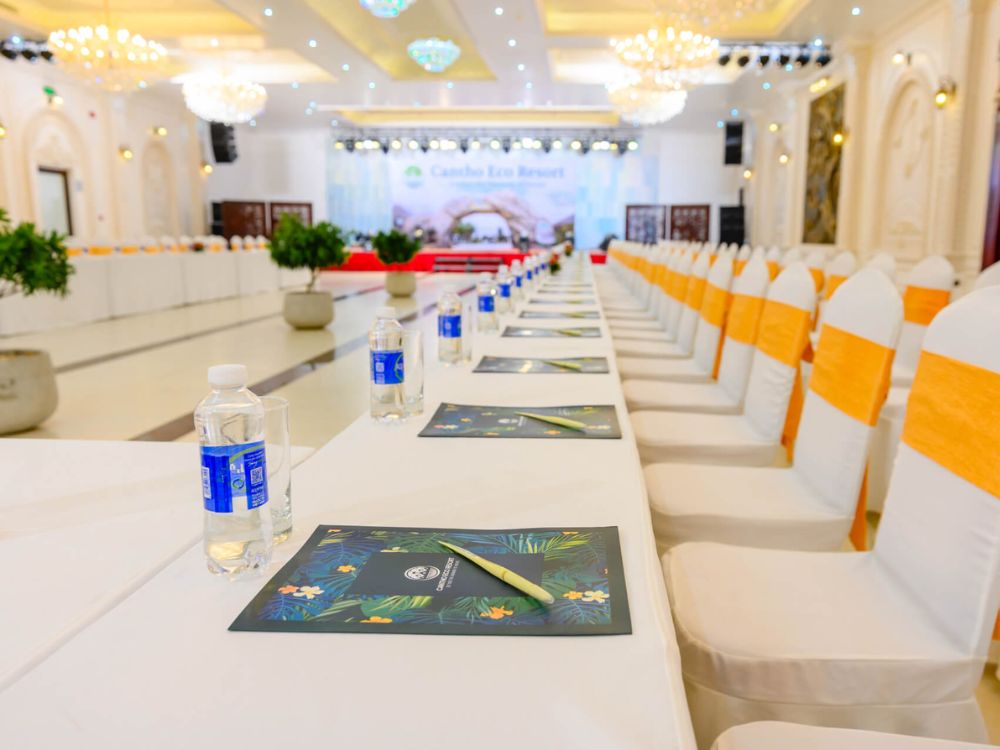 Với các tiện nghi hiện đại và không gian rộng lớn, Cantho Eco Resort cung cấp một loạt lựa chọn cho việc tổ chức sự kiện của các công ty. Từ phòng Eco Hall rộng 600m2 đến hàng loạt phòng họp, chúng tôi cam kết đáp ứng mọi nhu cầu của Quý khách. Đội ngũ nhân viên hỗ trợ luôn sẵn sàng phục vụ suốt quá trình diễn ra sự kiện. Hãy kể chúng tôi nghe về Hội nghị sắp tới của Quý khách tại đây để nhận được sự tận tâm và chuyên nghiệp từ chúng tôi.