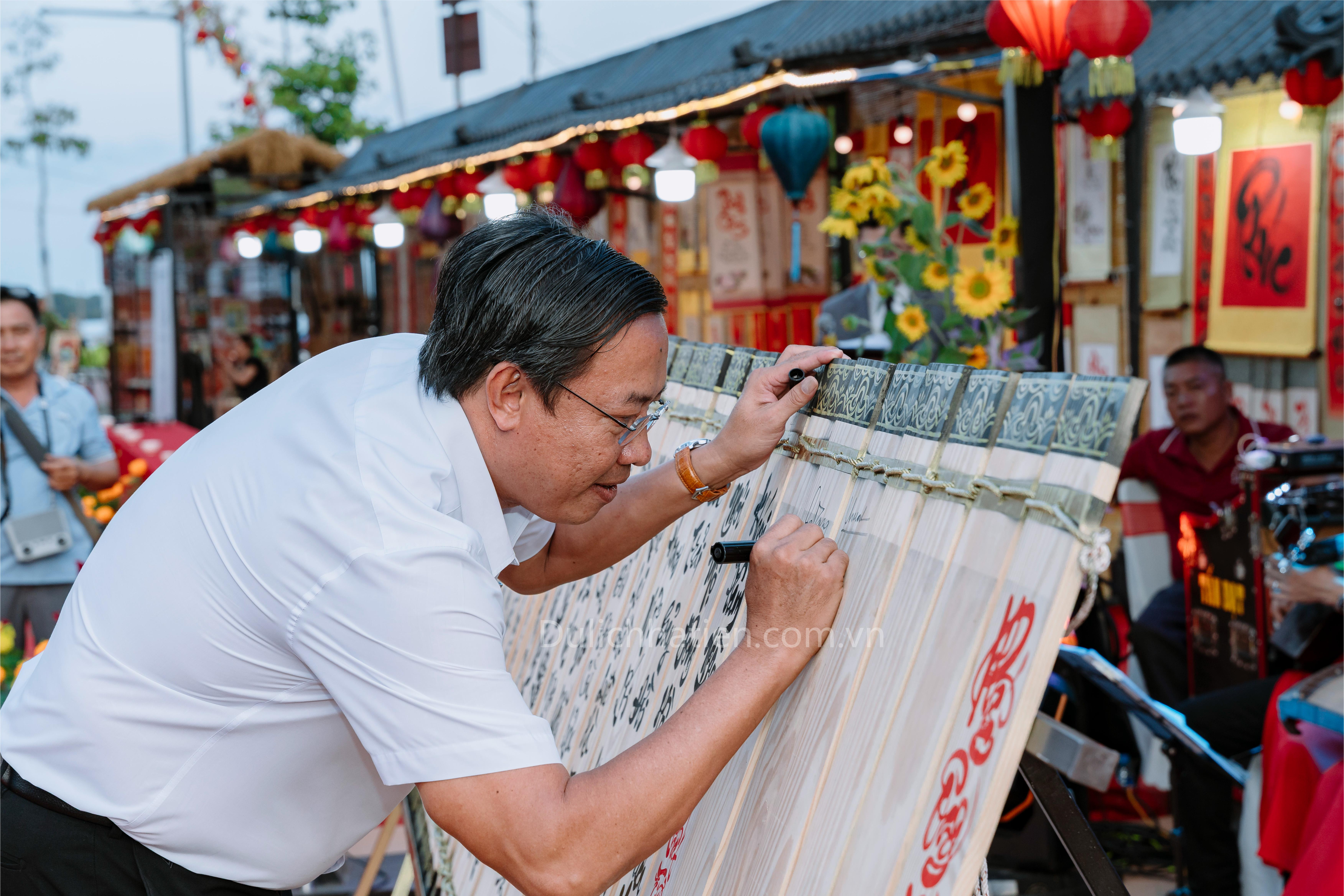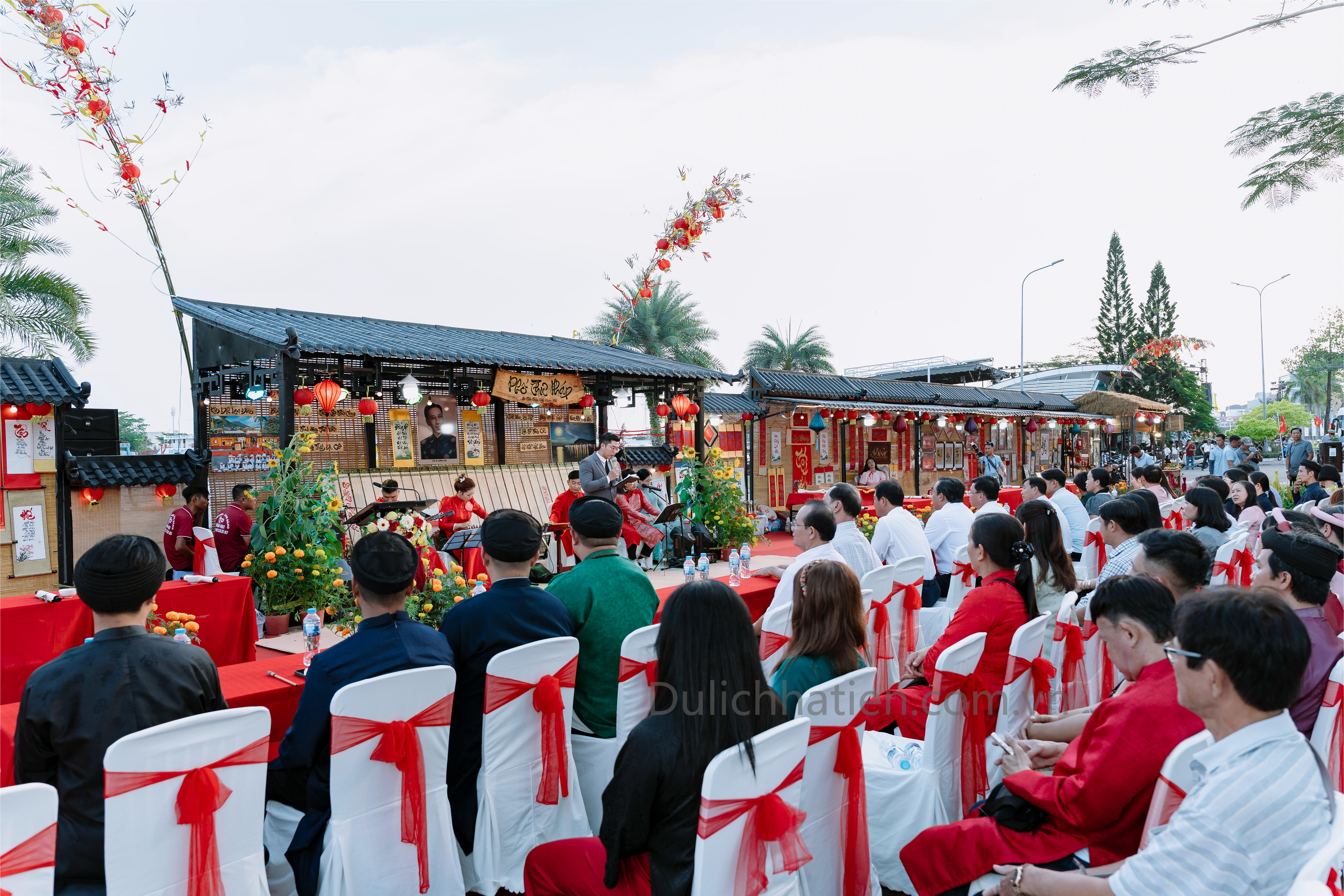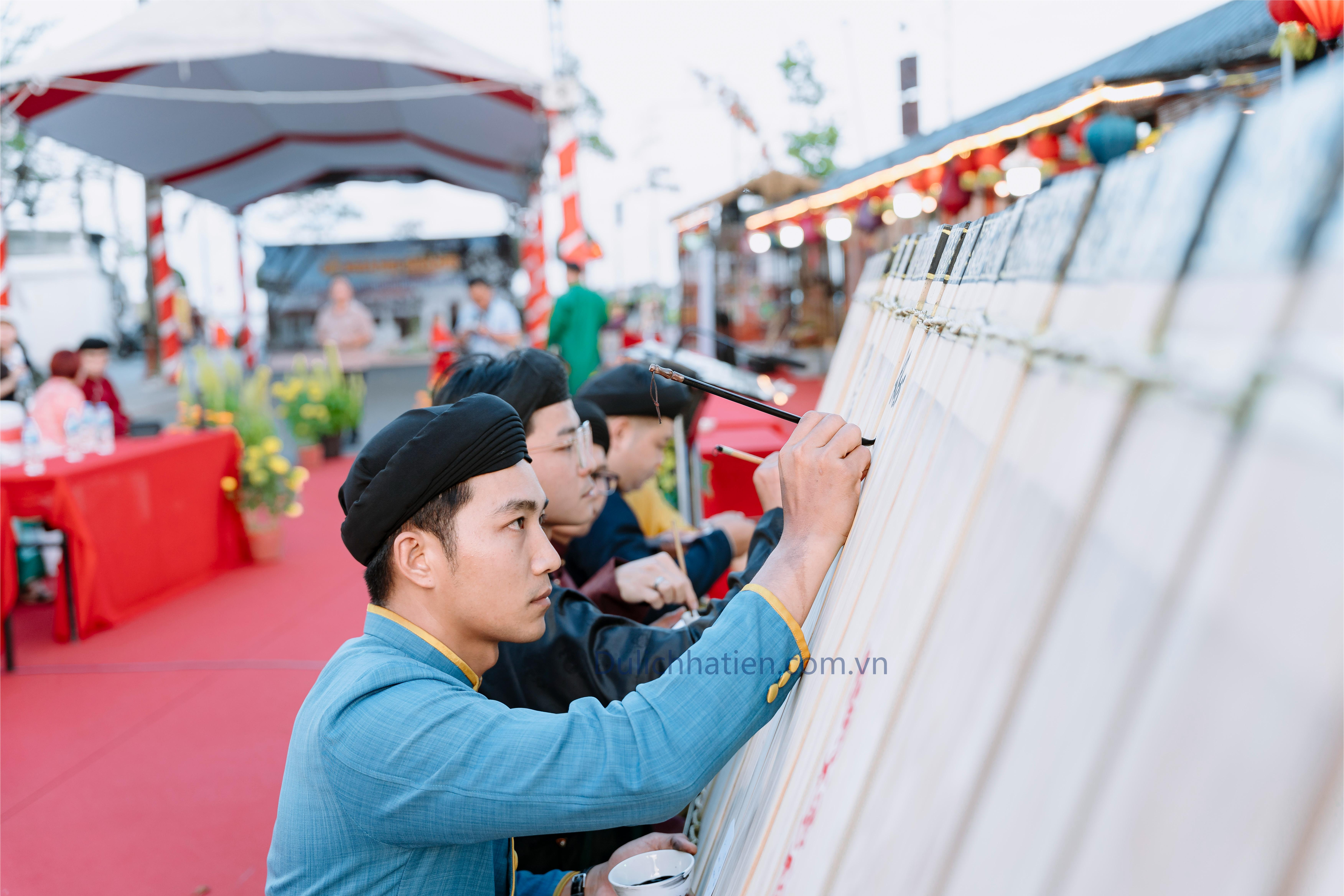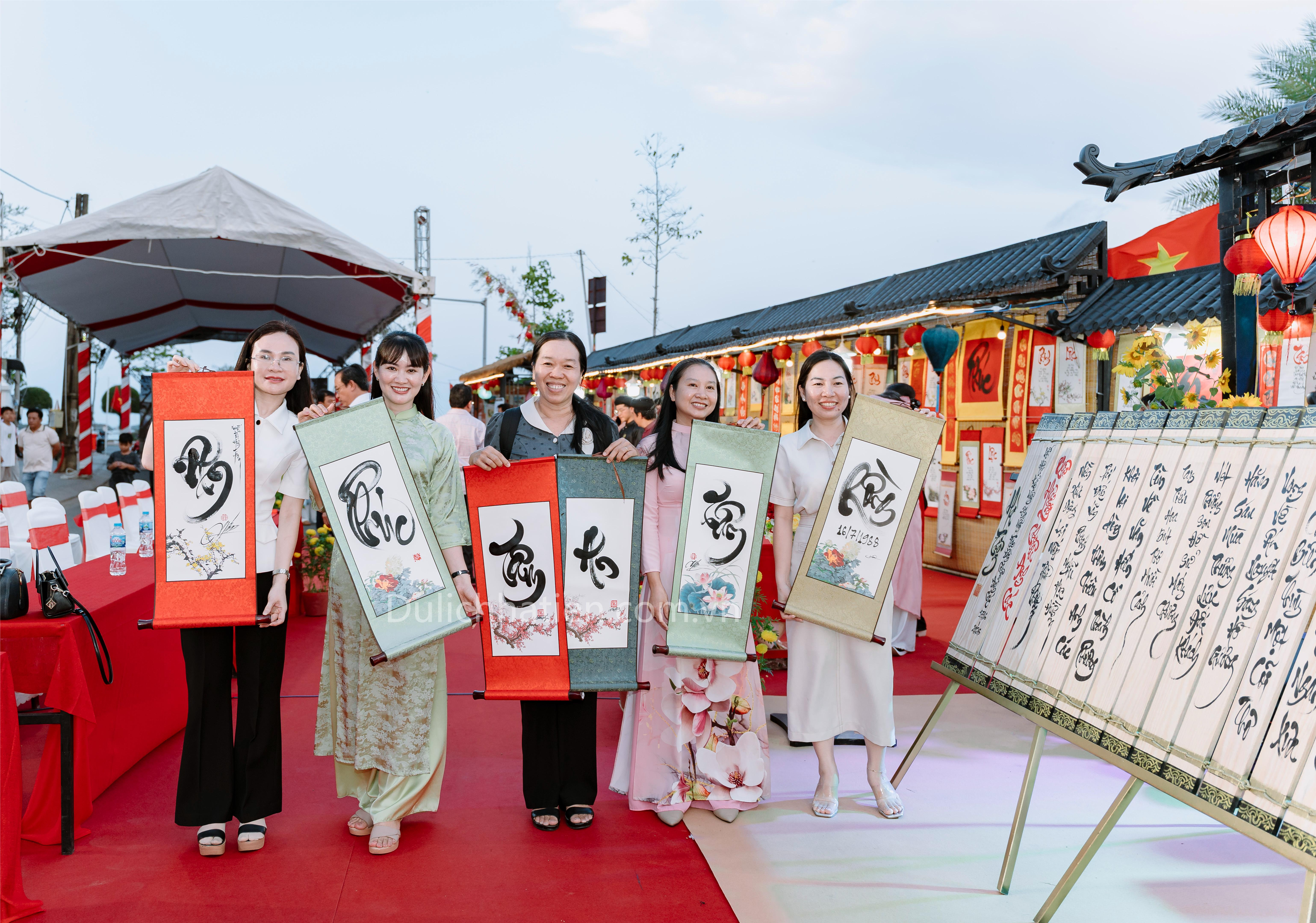 Không gian Phố thư pháp còn trưng bày nhiều câu đối, thơ xuân, chữ chúc; tác hiện hình ảnh ông đồ áo dài, khăn đóng; kết hợp biễu diễn nghệ thuật dân gian… tạo nên không gian văn hóa đặc sắc trong dịp lễ hội. Ngay trong ngày khai bút, đông đảo người dân và du khách đã đến tham quan, xin chữ và chụp ảnh lưu niệm.