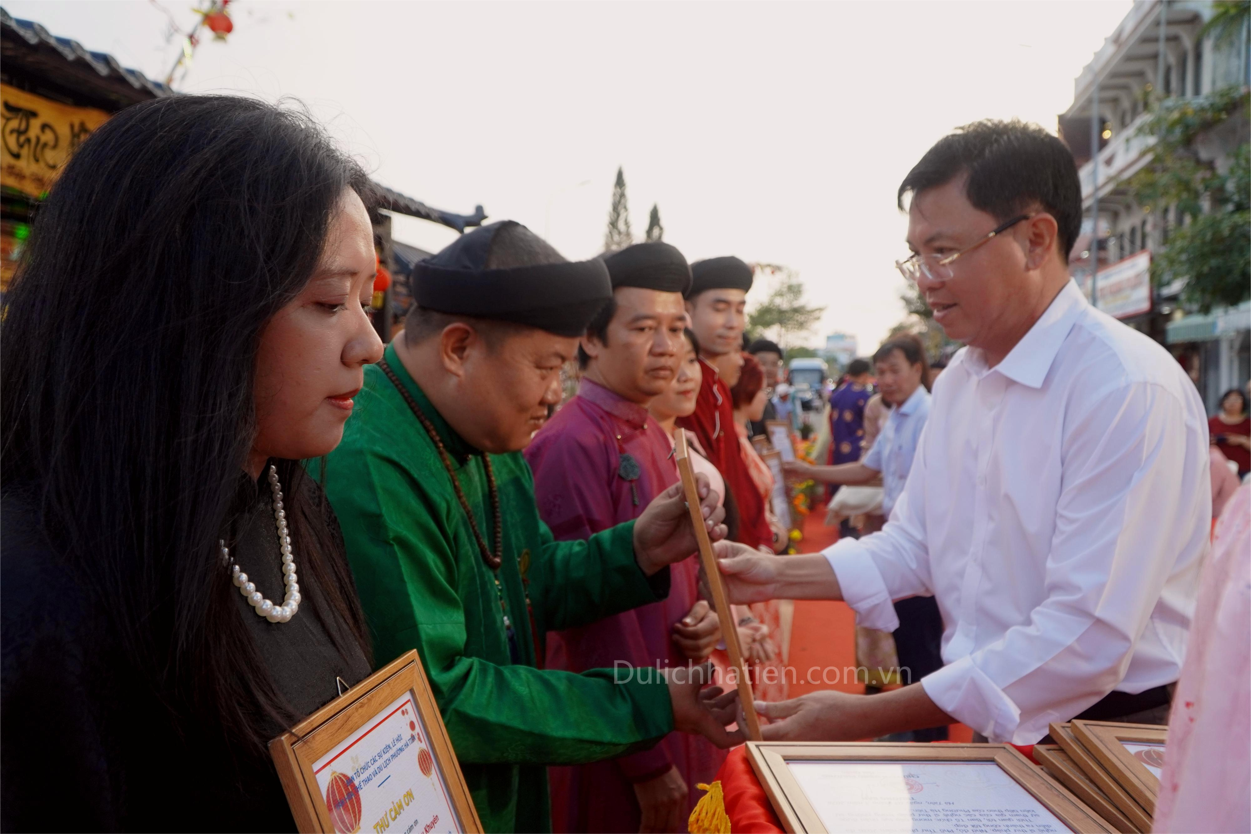 Tham dự khai bút có đồng chí Nguyễn Lưu Trung, Tỉnh ủy viên, Bí thư Đảng ủy phường Hà Tiên; các đồng chí Thường trực Đảng ủy, HĐND, UBND, Ủy ban MTTQ Việt Nam Phường; đại diện các ban, ngành, đoàn thể cùng đông đảo Nhân dân và du khách.