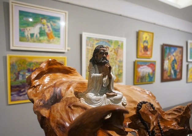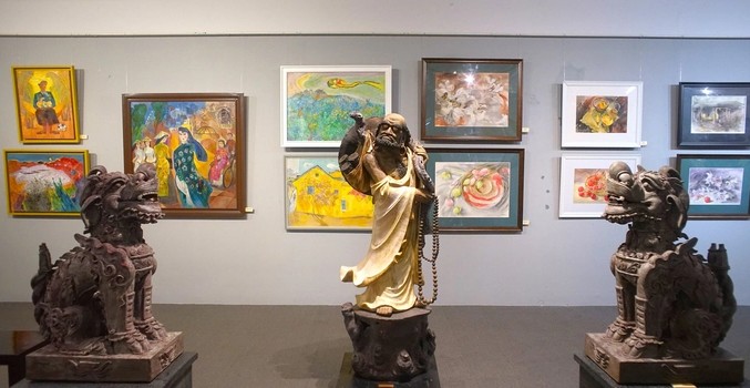 Góc trưng bày tượng và tranh của các tác giả Việt