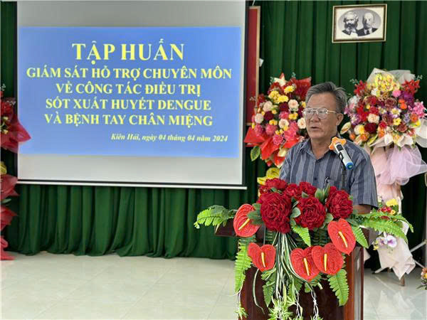Trong 02 ngày 04-05/04/2024, Sở Y tế tỉnh Kiên Giang tổ chức giám sát hỗ trợ chuyên môn về công tác điều trị bệnh Sốt xuất huyết Dengue (SXHD) và Tay chân miệng(TCM) tại Trung tâm Y tế huyện Kiên Hải do BSCKII Chung Tấn Thịnh - Phó Giám đốc Sở Y tế tỉnh Kiên Giang làm Trưởng đoàn cùng sự có mặt của hơn 20 cán bộ y tế của Trung tâm Y tế và 04 Trạm Y tế các xã.