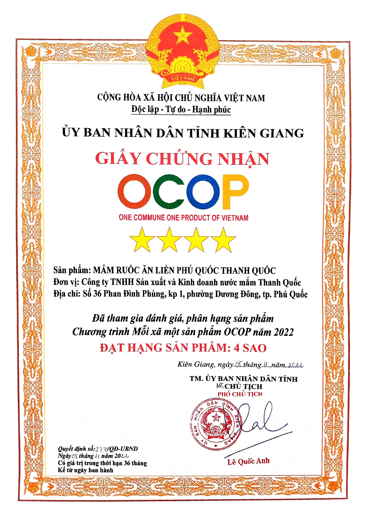 Công ty TNHH Sản Xuất Và Kinh Doanh Nước Mắm Thanh Quốc tự hào là một trong những công ty đầu tiên sản xuất nước mắm Phú Quốc của Việt Nam, có bề dày lịch sử hơn 100 năm với 4 thế hệ kế thừa truyền thống.