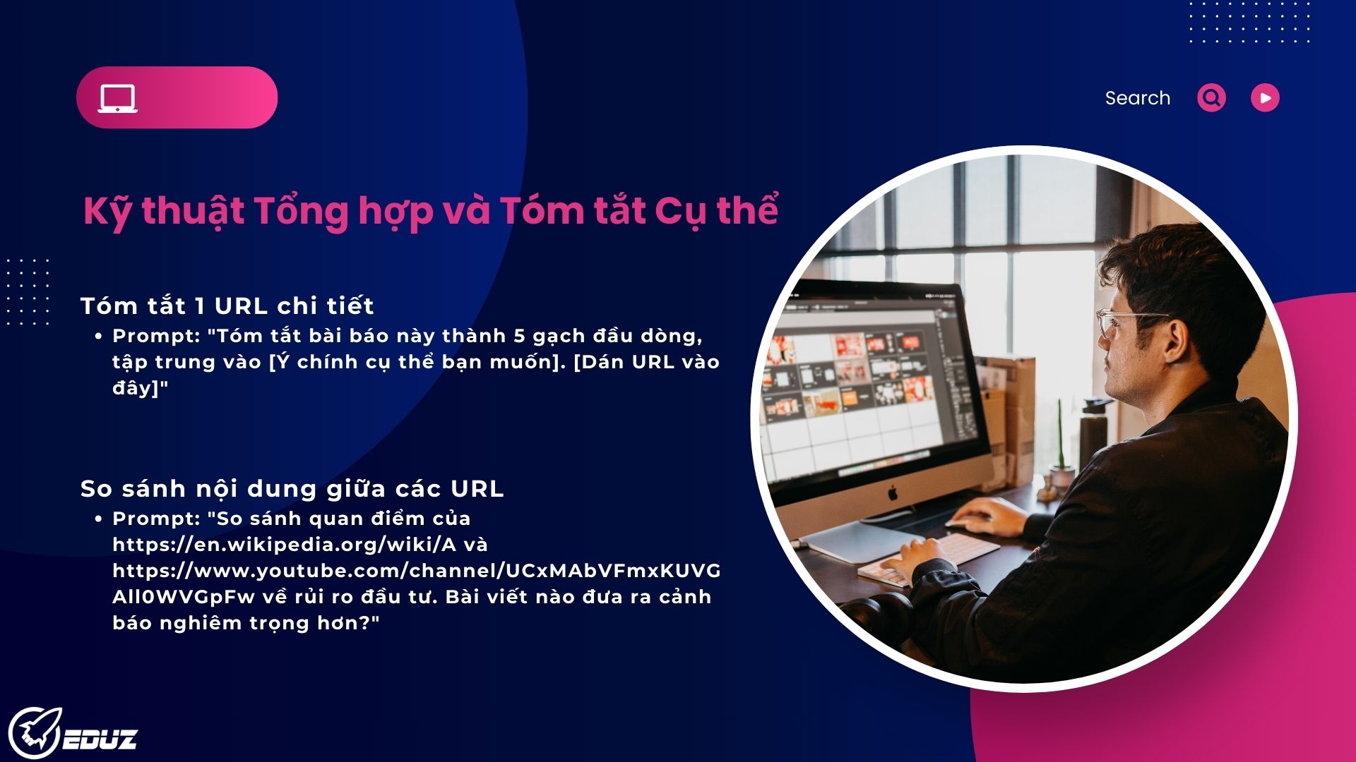 Ví dụ: "Tóm tắt bài phân tích thị trường này thành 5 gạch đầu dòng, tập trung vào tác động của chính sách mới lên ngành năng lượng tái tạo. [URL]"