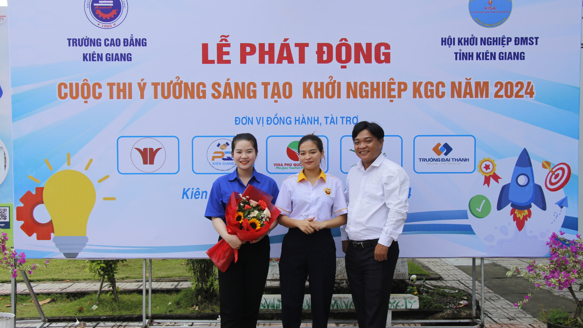 Tham dự buổi lễ có Tiến sĩ Nguyễn Xuân Niệm - Phó giám đốc Sở Khoa học công nghệ - Chủ tịch Hội khởi nghiệp ĐMST Kiên Giang, Tiến sĩ Lê Trung Kiên - Phó hiệu trưởng nhà trường, Thạc sĩ Lê Nhật Quang - Giám đốc trung tâm hỗ trợ khởi nghiệp KGC, Ban lãnh đạo các doanh nghiệp tài trợ, đồng hành với cuộc thi cùng hơn 100 em sinh viên tham gia hội thi.
