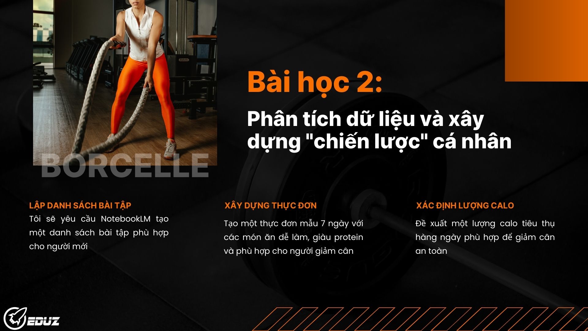 Hành trình cải thiện vóc dáng, đặc biệt khi bạn đang bị thừa cân, có thể rất khó khăn và dễ nản lòng. Có vô số lời khuyên trên mạng, từ những chế độ ăn kiêng khắc nghiệt cho đến các bài tập cường độ cao, khiến bạn không biết nên bắt đầu từ đâu. Tôi đã từng ở trong tình trạng đó, và tôi đã sử dụng NotebookLM như một "huấn luyện viên" cá nhân để tạo ra một kế hoạch khoa học, an toàn và phù hợp với chính mình. NotebookLM đã giúp tôi biến mục tiêu lớn lao thành những bước đi nhỏ, có hệ thống và dễ dàng thực hiện. Bài học này sẽ hướng dẫn bạn cách tôi đã lập kế hoạch cho hành trình của mình, từ việc thu thập thông tin đến việc theo dõi tiến độ.