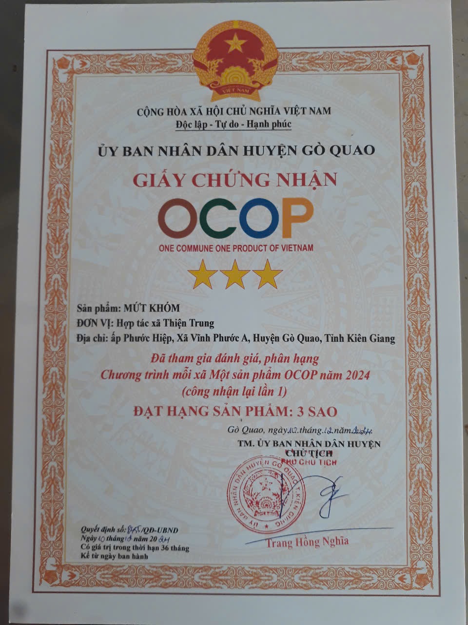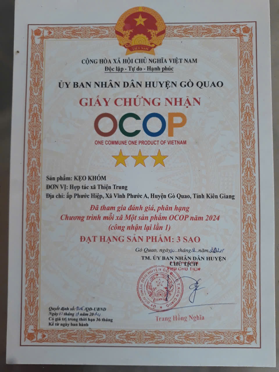 Bộ Giấy Tờ - Sản Phẩm Khóm Sấy, Mứt Khóm, Kẹo Khóm, Nước Màu Khóm