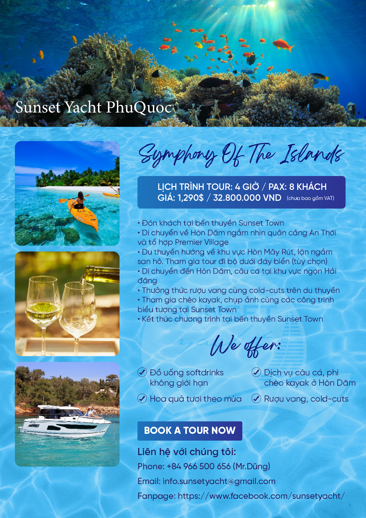 Hãy đặt ngay để tận hưởng kỳ nghỉ trên du thuyền đẳng cấp – nơi đại dương xanh thẳm trở thành không gian riêng của bạn!