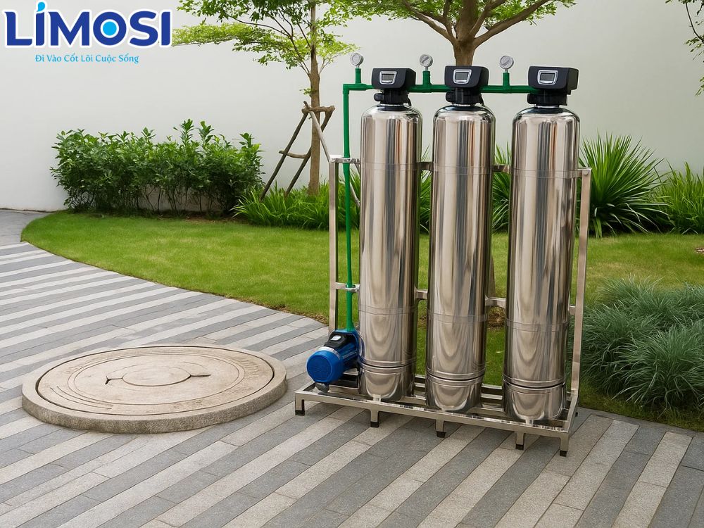 3 cột Inox 304 Ø : kích thước tiêu chuẩn, khả năng lọc cao (Đảm bảo lọc sâu).