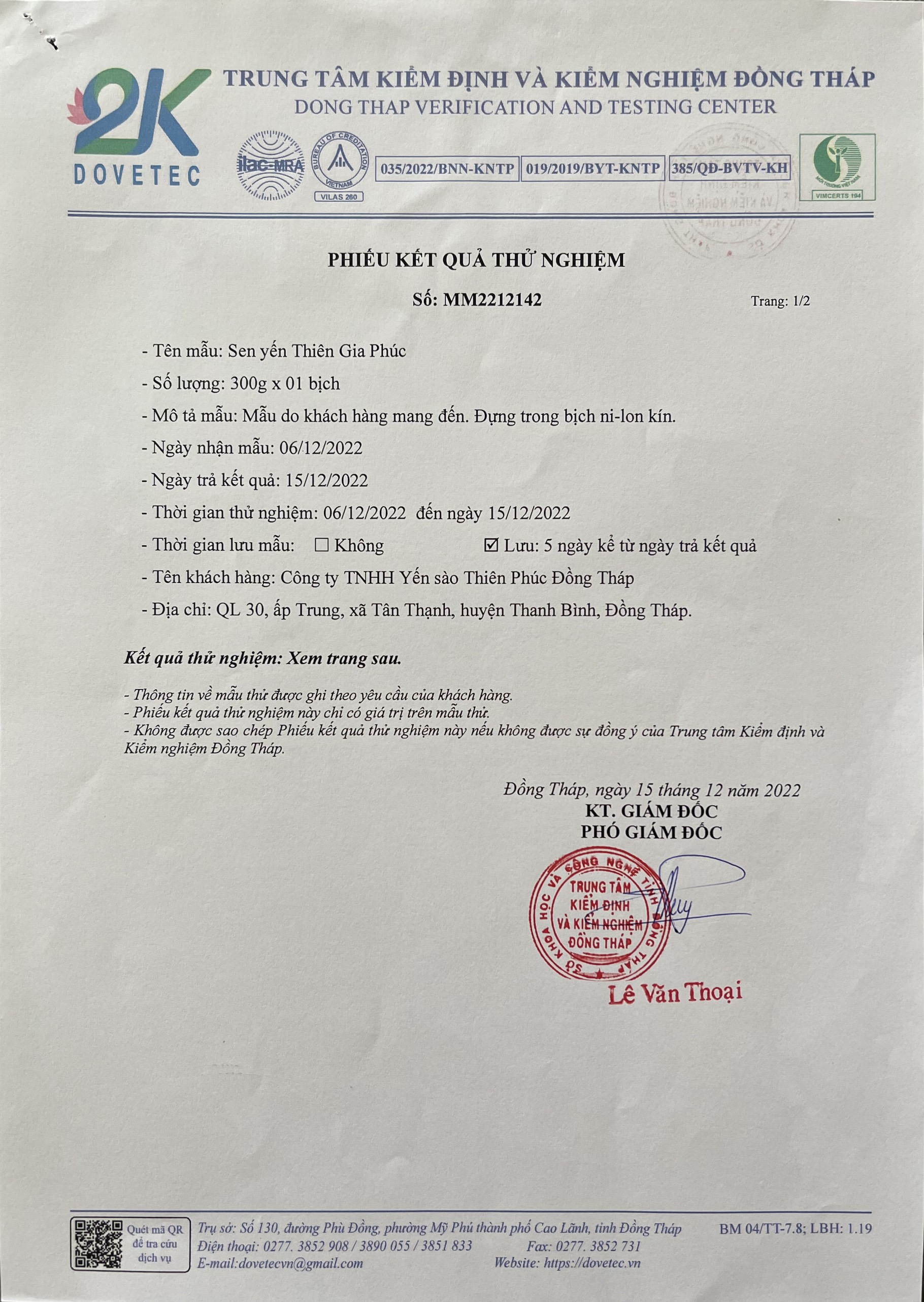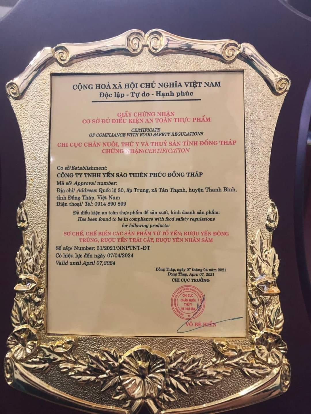 Bộ Chứng Thực Sản Phẩm Sen Yến | Thiên Gia Phúc 0